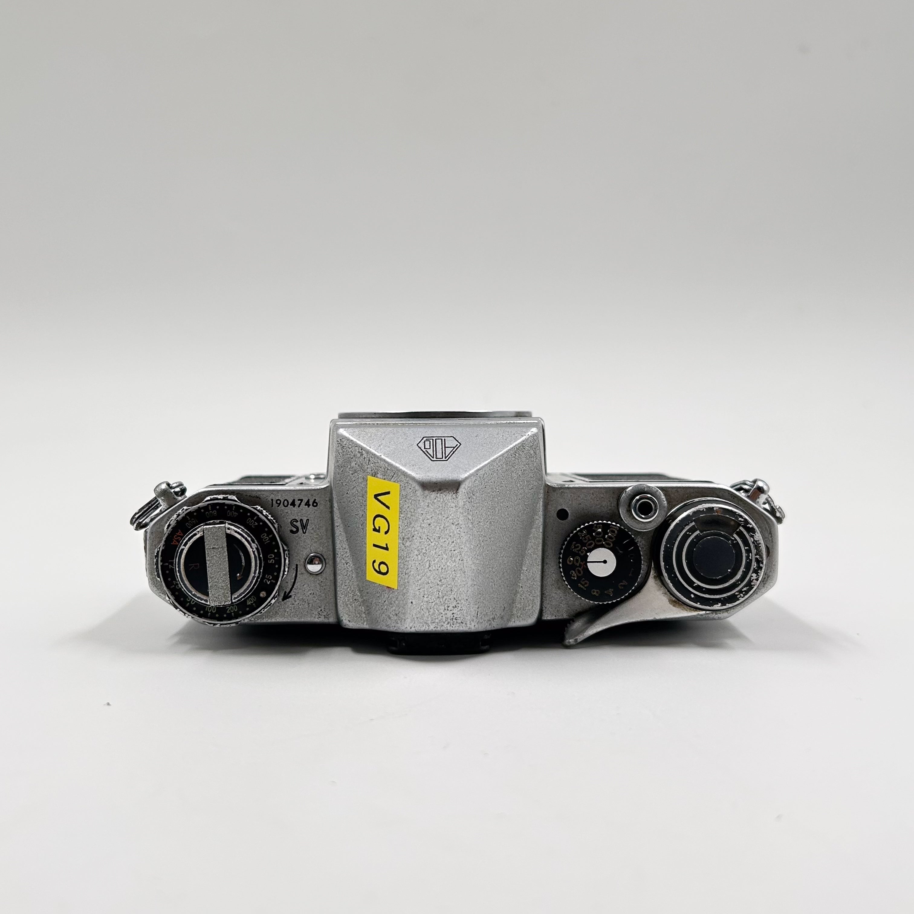 The camera is in good mechanical condition, with only the light meter non-functional. Shutter speeds fire, film transport is smooth, and the view finder optics are clean. Rated good due to the meter issue.