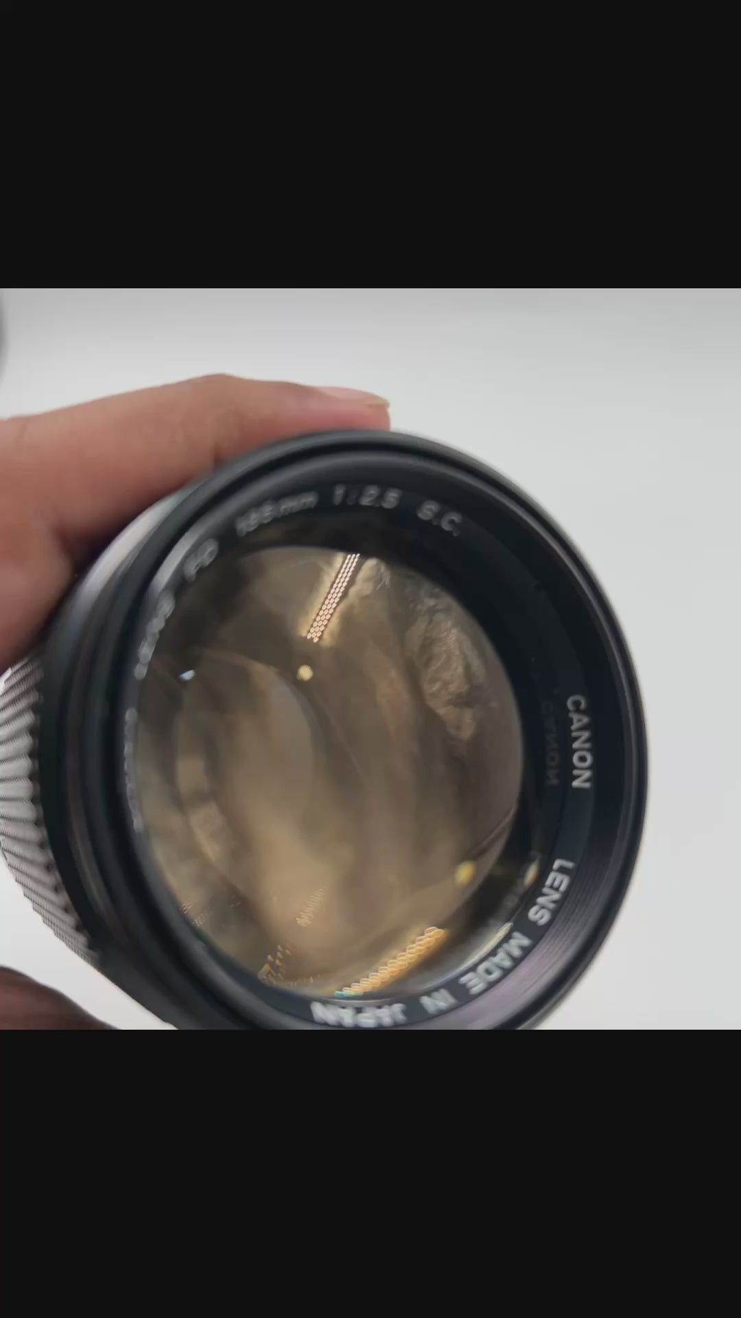 The Canon FD 135mm f/2 lens (JL13) has been inspected by CPB Darkroom. It is in good working condition with smooth focusing and responsive aperture blades. However, minor visible fungus is present on the optical elements, which may affect image contrast under certain lighting conditions. The lens shows moderate cosmetic wear consistent with age.