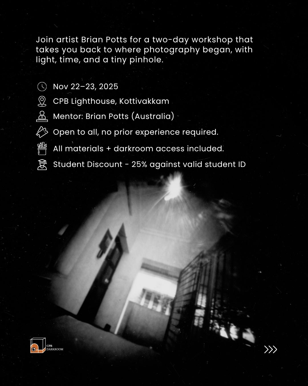 Apply for the student discount by sending a short note about your interest in analog photography along with your student ID proof to darkroom@chennaiphotobiennale.com.