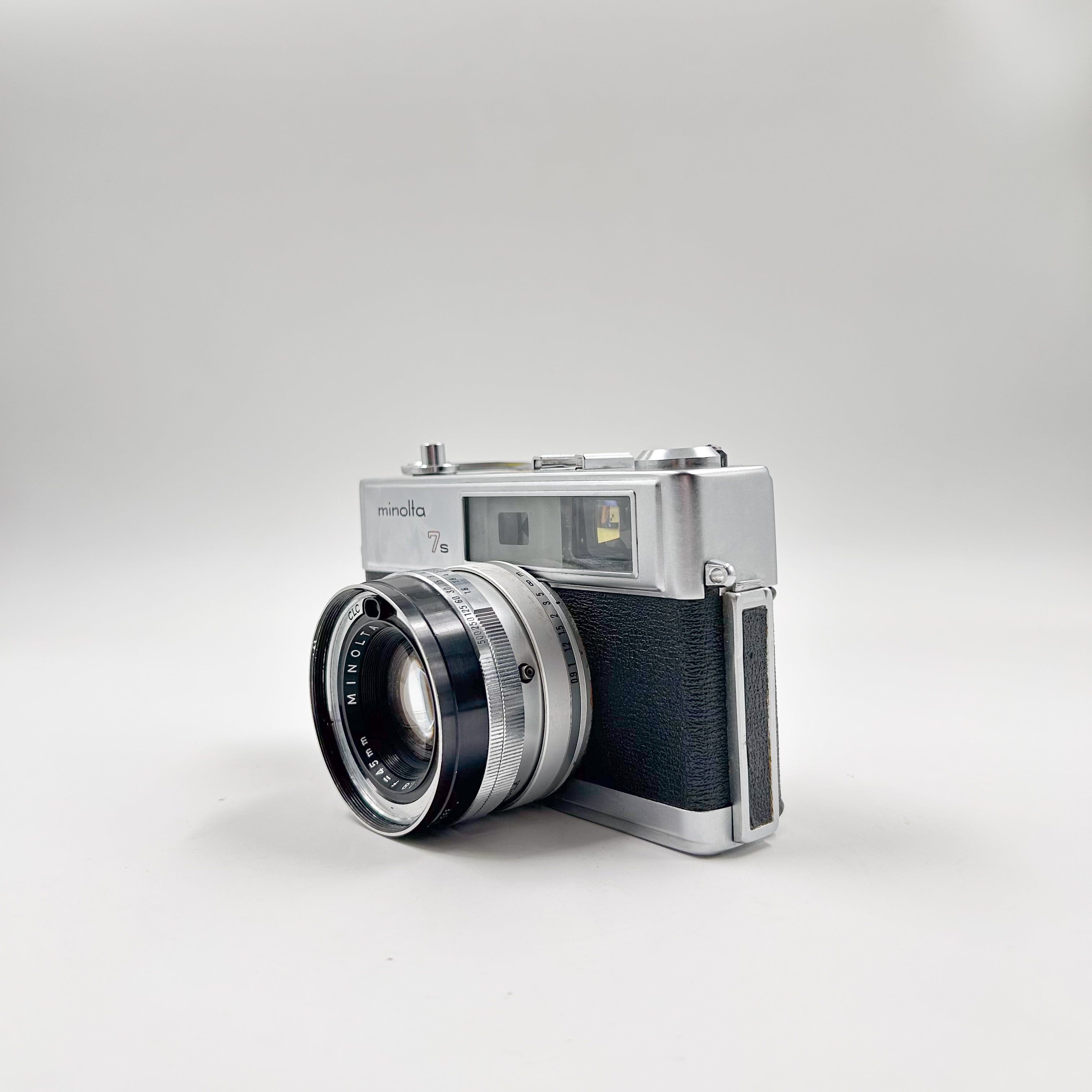 Released in the late 1960s, the Minolta 7s is a solidly built rangefinder featuring the sharp Rokkor-PF 45mm f/1.8 lens, known for excellent contrast and pleasing rendering. With both manual and automatic exposure modes (when metering is functional), it offers flexibility while maintaining the simplicity and quiet operation typical of leaf-shutter rangefinders.