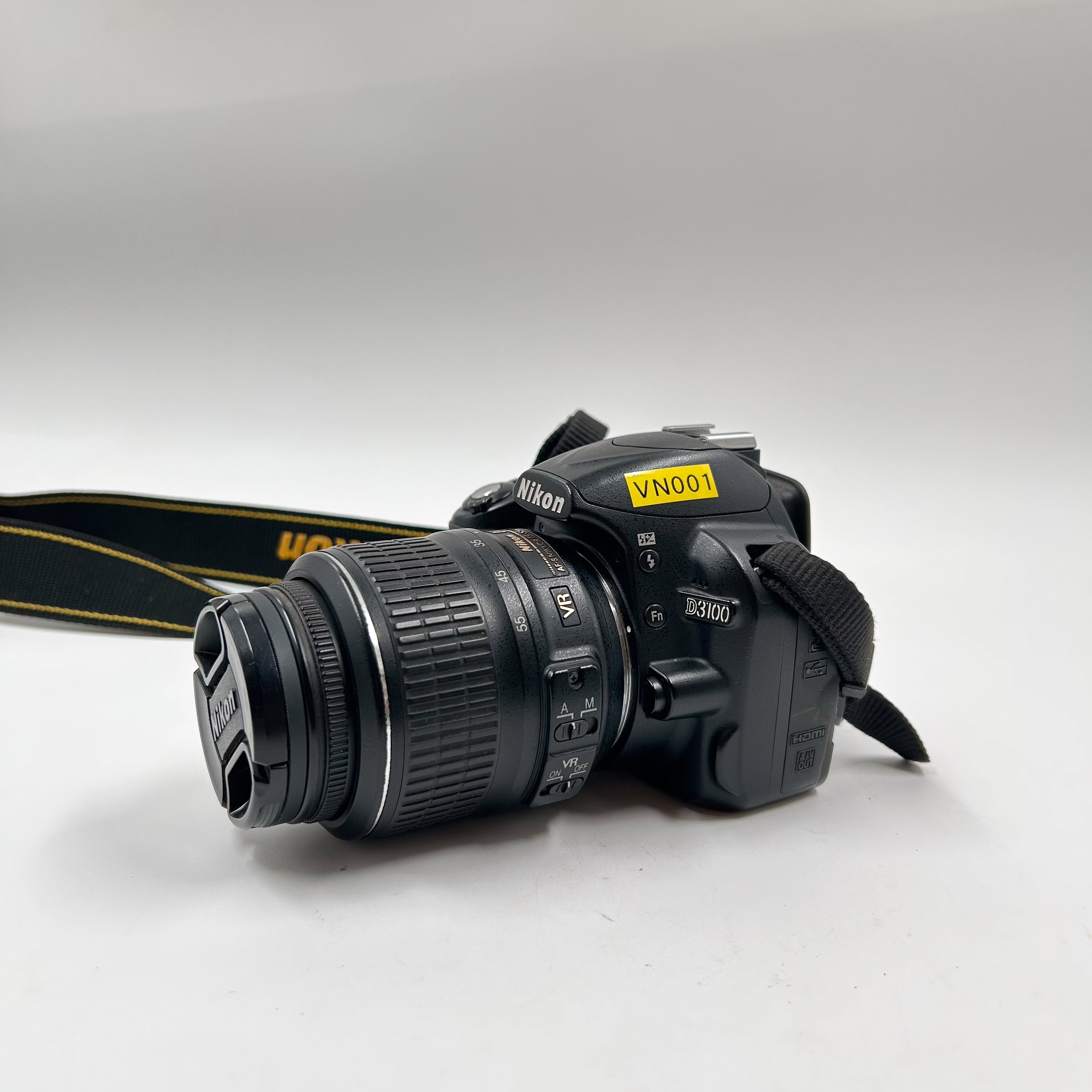 The Nikon D3100 (VN001), paired with the AF-S DX Nikkor 18–55mm f/3.5–5.6, has been inspected and tested by CPB Darkroom. The camera powers on normally, and all primary functions — shutter, autofocus, dials, buttons, and shooting modes — are working accurately. The rear screen, menu system, and playback functions operate smoothly. The body is in excellent cosmetic condition with only minimal signs of wear consistent with age. The images shown depict the exact camera you will receive.