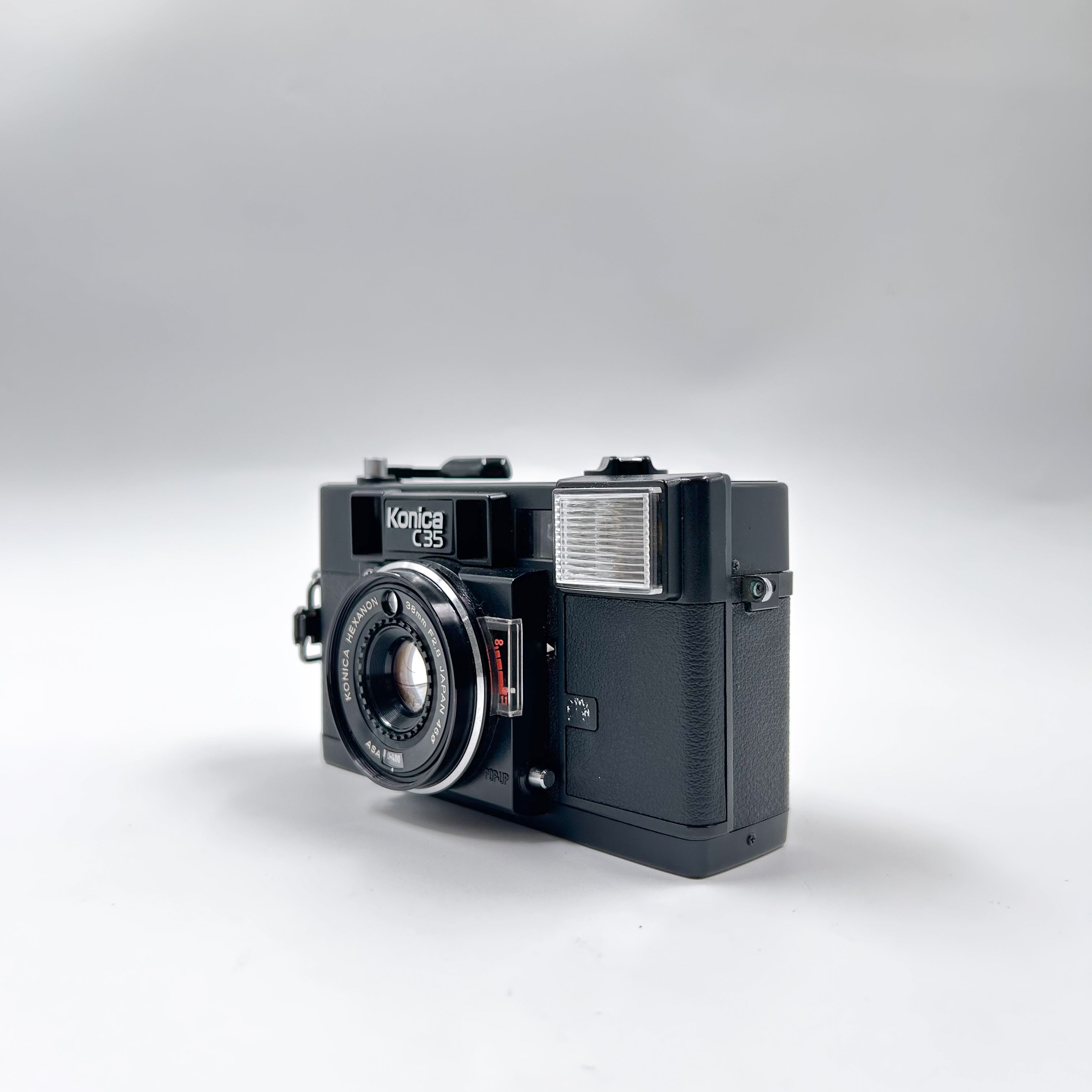 Released in 1968, the Konica C35 is a compact, fully automatic 35mm rangefinder camera known for its exceptional image quality and ease of use. It features the sharp Hexanon 38 mm f/2.8 lens, paired with Konica’s reliable automatic exposure system, delivering accurate exposures and rich, vibrant images. Compact, lightweight, and quiet, it quickly became one of the most popular rangefinder-style compacts of its time.