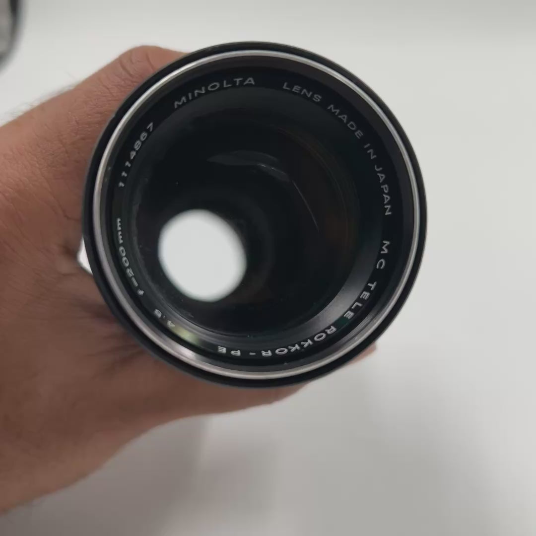 The Minolta MC Tele Rokkor–PE 200mm f/4.5 (NM33) has been inspected by CPB Darkroom. The lens is in good mechanical and optical condition, with very minor fungus in the corners of the optics. The remaining elements are clean, the aperture blades function correctly, and the focus ring turns smoothly. Cosmetically, the lens is in good condition with light signs of use. The images shown depict the exact lens you will receive.