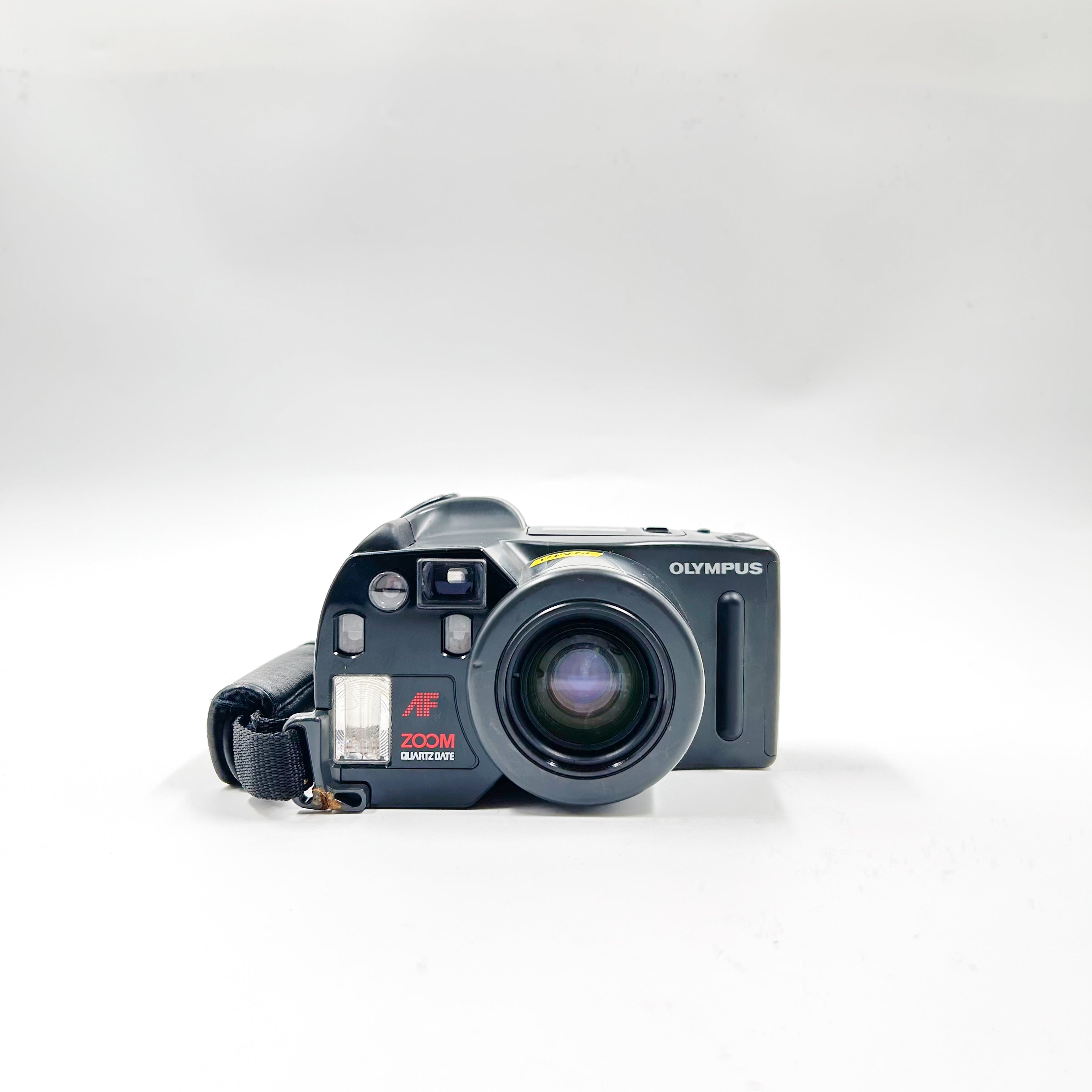 This camera uses standard 35 mm (135) film and produces 24 × 36 mm negatives. Its ergonomic grip, precision autofocus, and Olympus optics combine to deliver consistently sharp, well-exposed images.