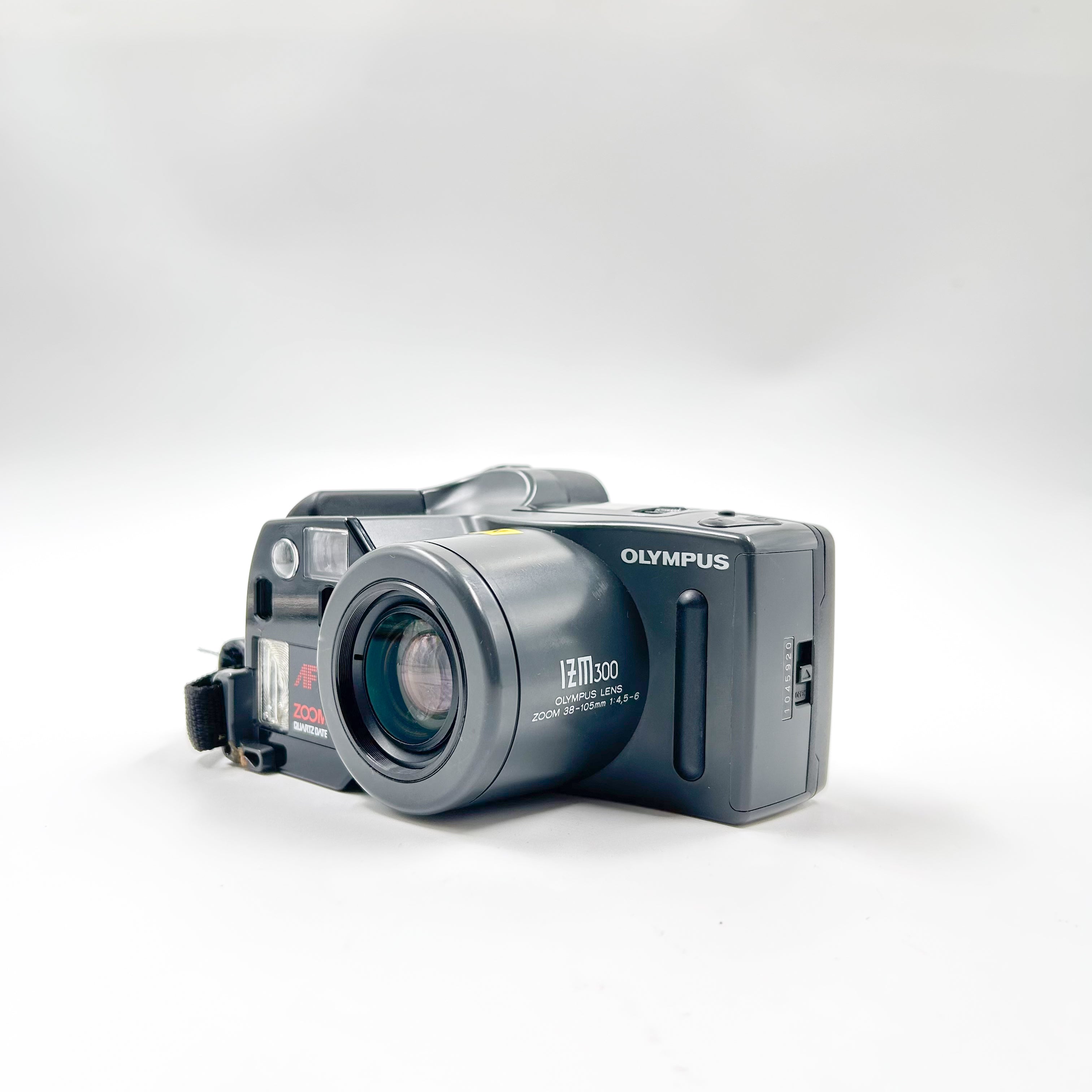 Introduced in the mid-1990s, the Olympus IZM 300 is a feature-rich compact zoom camera equipped with a 38–105 mm f/4.5–6.9 Olympus Zoom Lens. This range offers flexibility from wide-angle to telephoto framing, making it suitable for portraits, travel, and everyday use. The camera also includes a built-in flash with red-eye reduction, self-timer, and a large LCD display for mode settings.