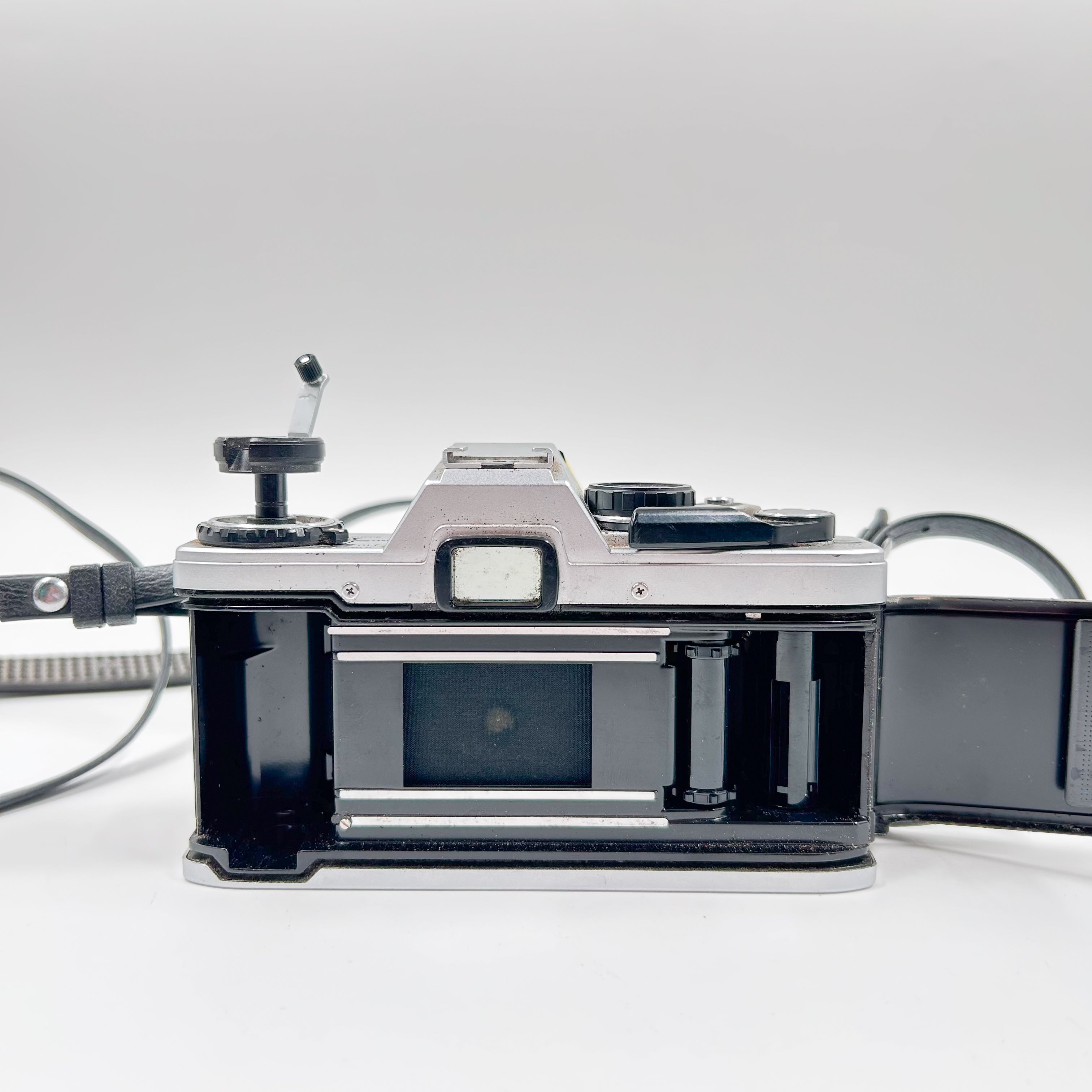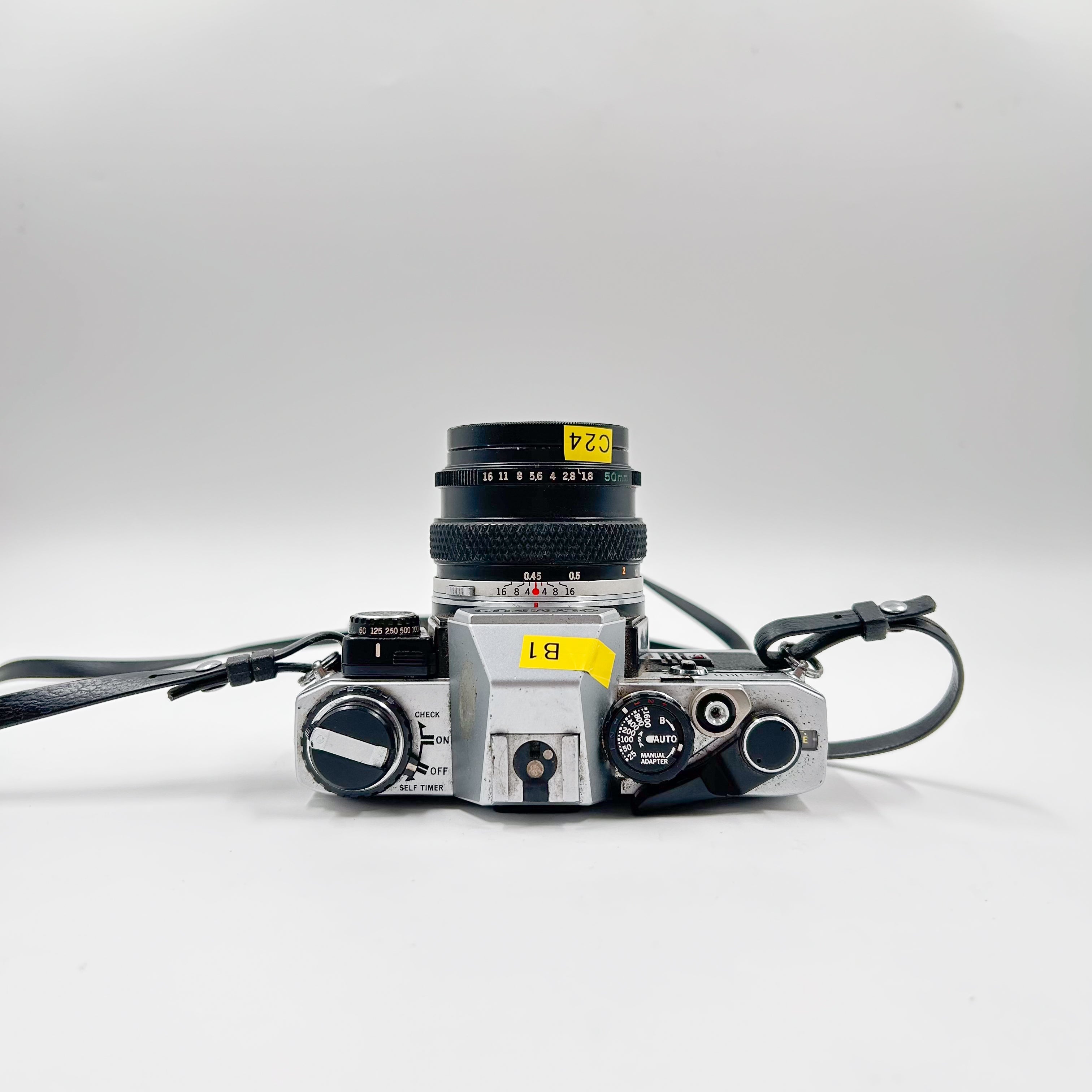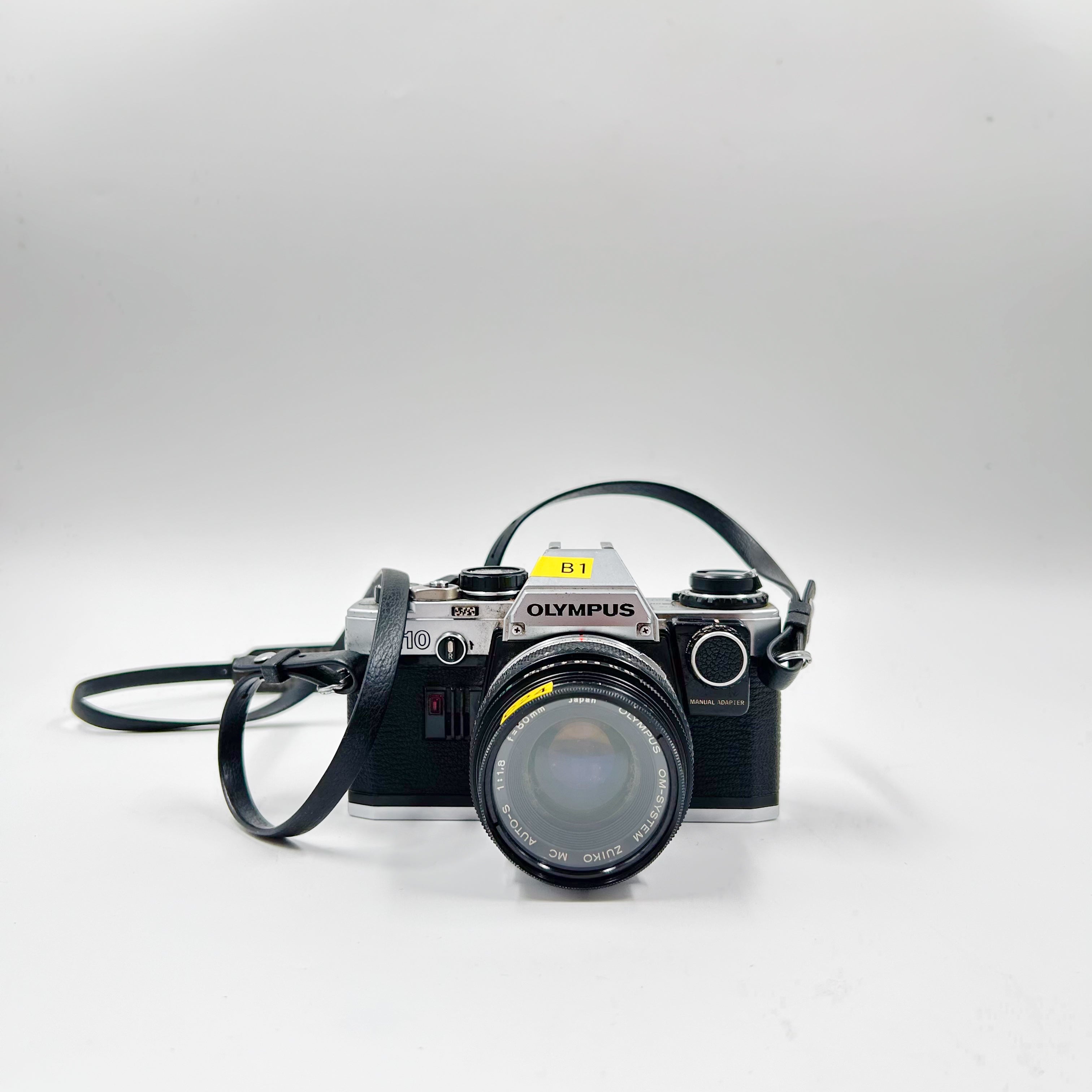 Launched in 1979, the Olympus OM10 was introduced as an affordable, compact SLR within the OM system, designed by Yoshihisa Maitani. It features aperture-priority auto exposure with the option for manual control using an external adapter. Paired with the fast and sharp Zuiko 50mm f/1.8 lens, this kit provides excellent results for beginners and enthusiasts exploring the OM system.