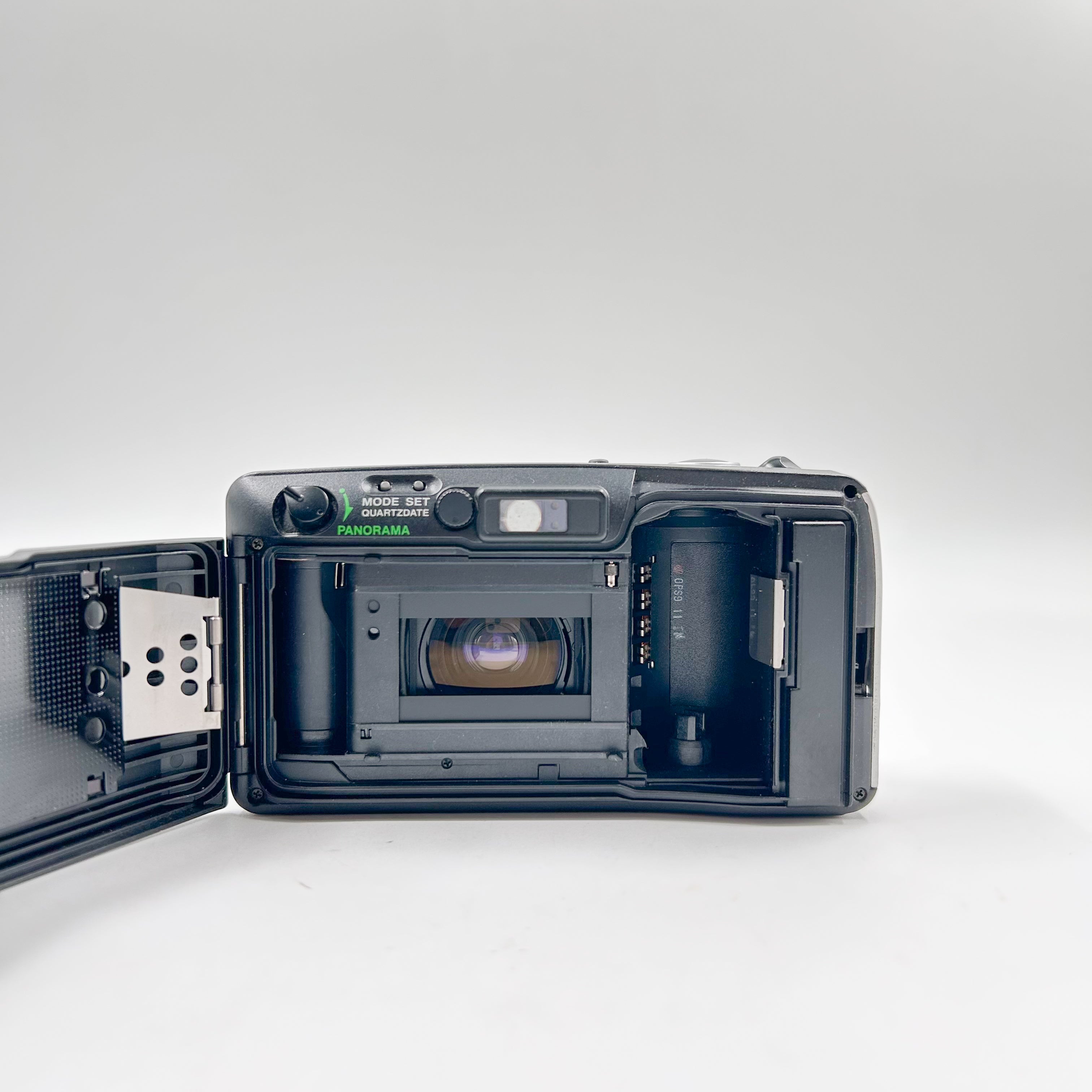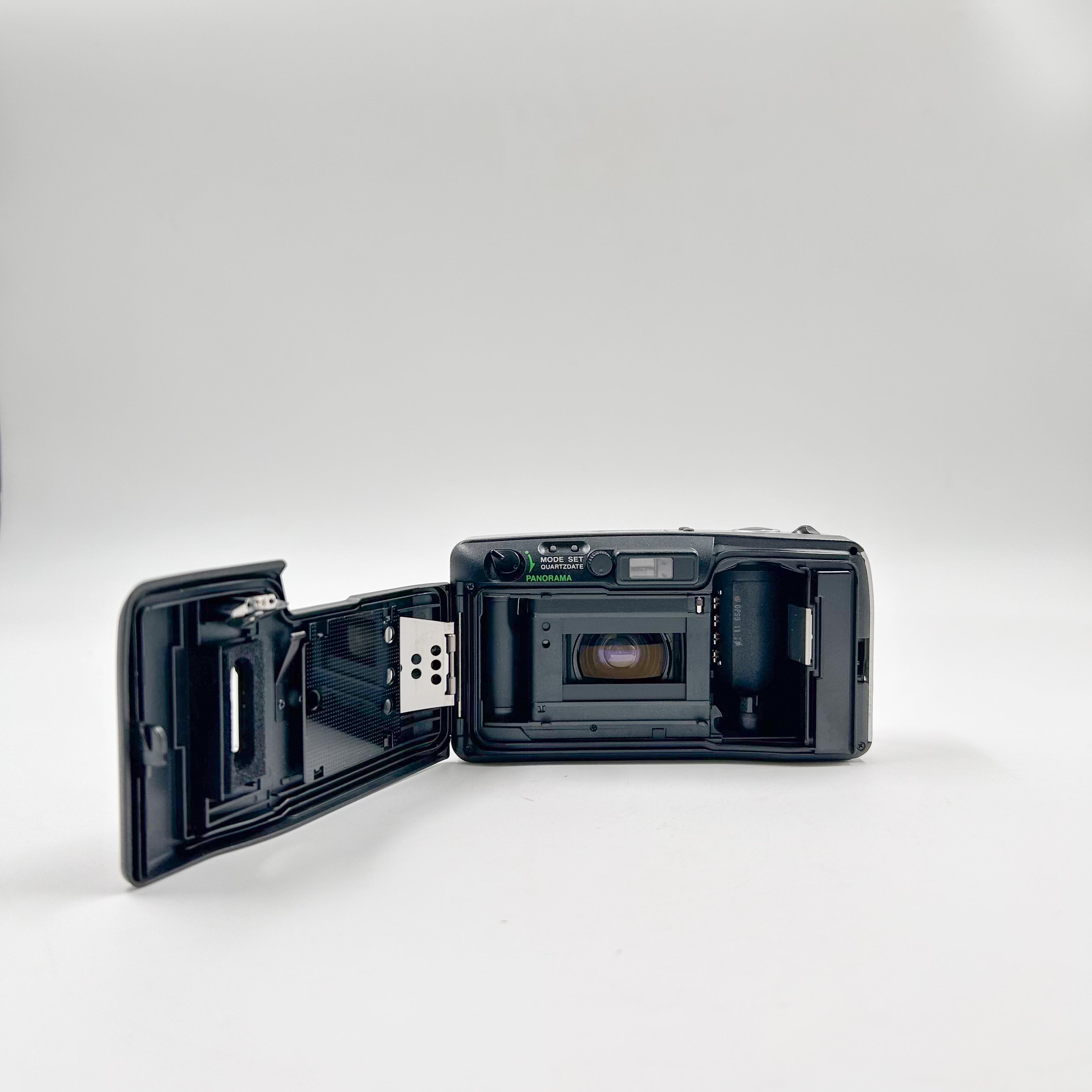 The Olympus OZ105R (VG34) has been inspected by CPB Darkroom. The camera is in Excellent working condition, with zoom, flash, and film transport all operating correctly. The flash fires consistently, and all buttons and controls respond as intended. Cosmetically, the camera shows normal signs of use consistent with age. The images shown depict the exact camera you will receive.