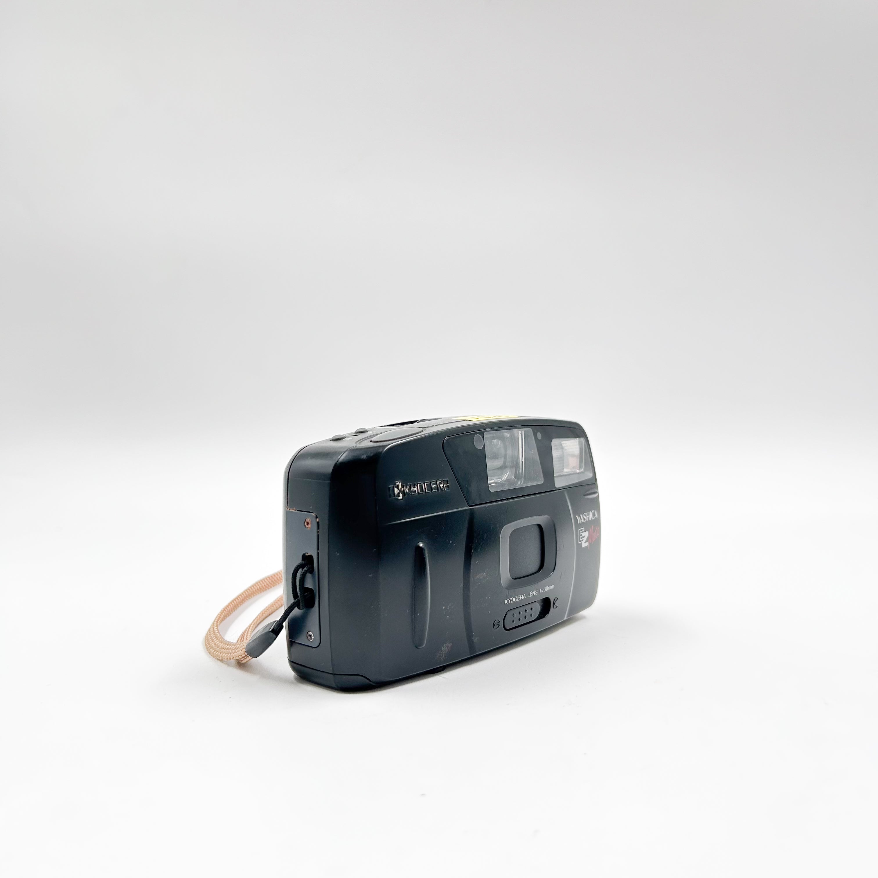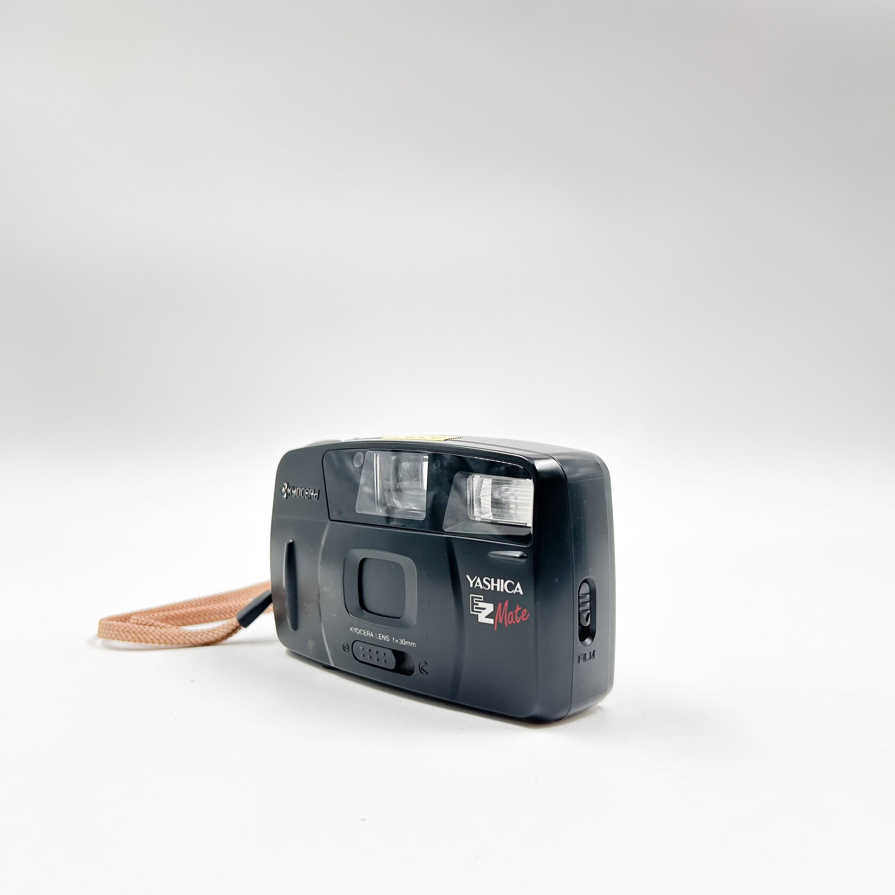 The Yashica EZ Mate is a late-1990s compact 35mm point-and-shoot camera designed for effortless everyday photography. Lightweight and reliable, it features a wide 28 mm lens that captures a broader field of view than most compacts — ideal for travel, group portraits, and street photography. With its automatic exposure and built-in flash, the EZ Mate delivers crisp, balanced images in a wide range of lighting conditions.