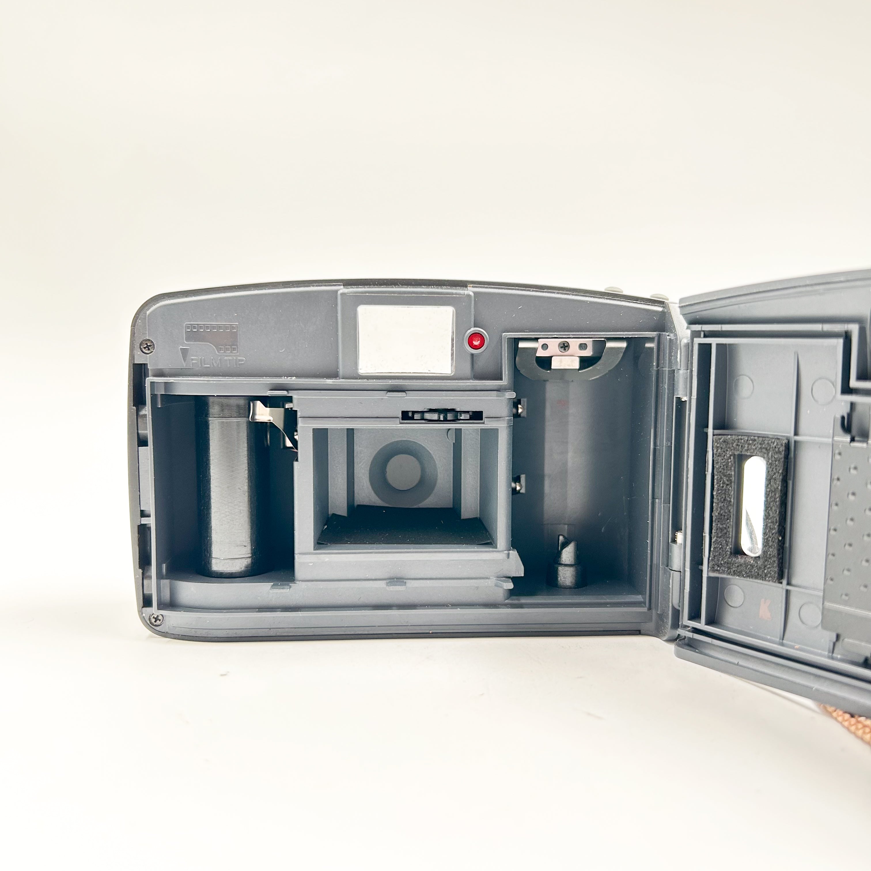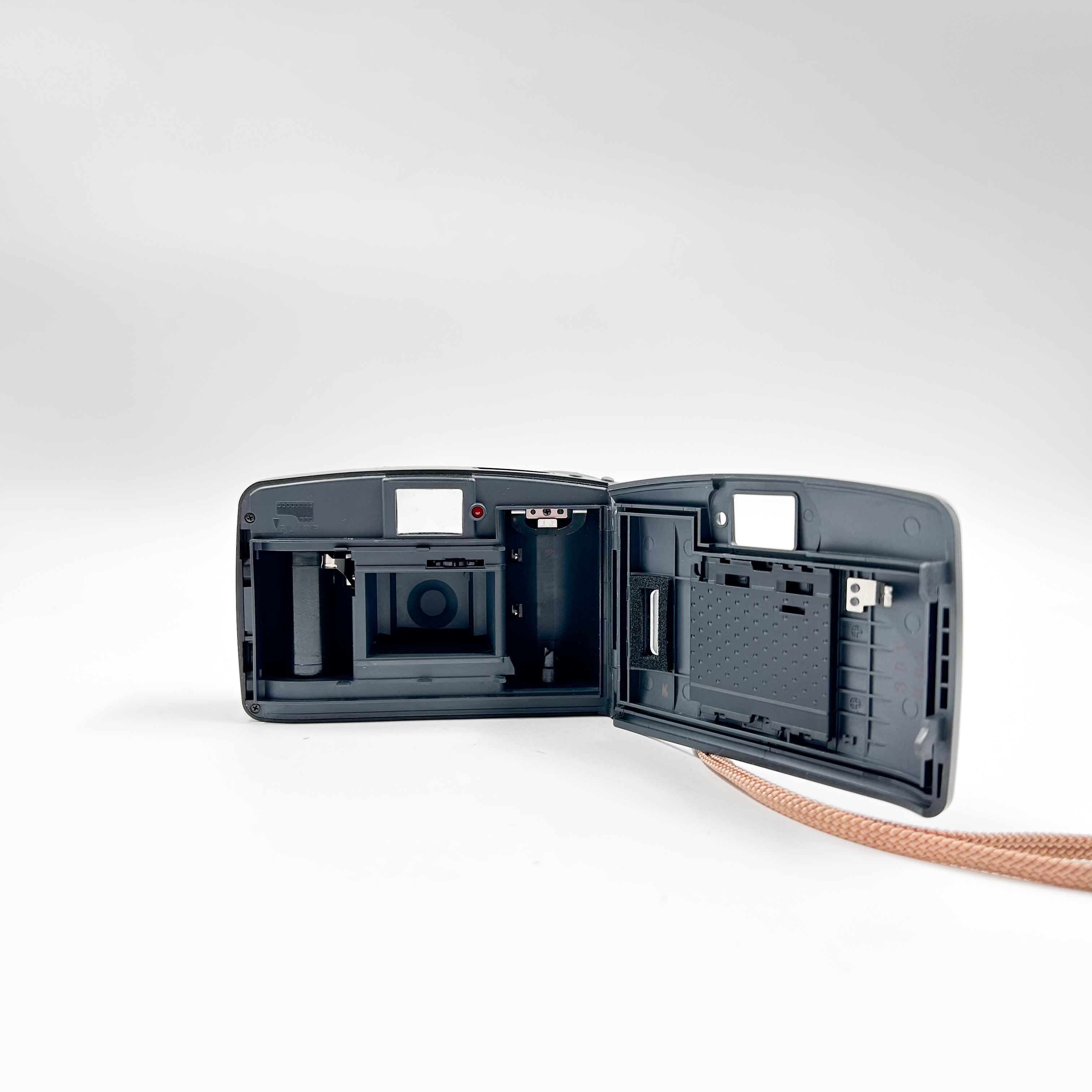 This is a fully automatic 35 mm film camera — load the film, power on, and start shooting. Fixed focus and programmed auto-exposure make it a great choice for casual film shooters or those getting into analog photography for the first time.